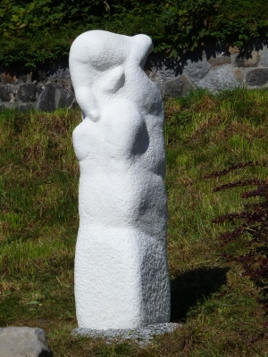 Zo'n groot werk zal ik nauwelijks meer gaan doen. Door zijn afmeting (190x50x40), gewicht (bijna 1000 kilo) én zeggingskracht leek het mij wel noodzaak, om voor haar een buitenplaats liefst in de bergen te zoeken. Mijn grootste wens ging in vervulling. Consuela, de marmermama met kind, kan nu altijd over de witte bergtoppen kijken. Het is een krachtige en sterke setting geworden.